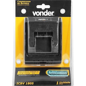 Indicado para carregar as baterias modelos IBV 1802 e IBV 1804, da linha intercambiável VONDER. Tempo de carregamento (aproximado): bateria de 2,0 Ah - 1 hora / bateria de 4,0 Ah - 2 horas. Carregador com carregamento convencional.