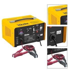 Conteúdo da embalagem: carregador de bateria CBV 950 Vonder, cabos com garra para conexão, manual de instruções
