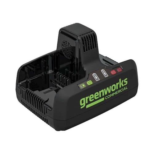Projetado para integrar perfeitamente o sistema profissional GREENWORKS 82V, o carregador garante compatibilidade total com as baterias da linha, proporcionando segurança, eficiência e longa vida útil para seus equipamentos.