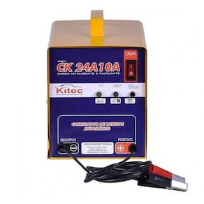 - Marca: Kitec - Modelo: CK24A10 - Quantidade: 1 unidade - Com garras resistentes - Velocidade: Lento - Saída: 10A - 24V - Cabo positivo/negativo - Chave seletora 110/200 V - Com luz indicadora de bateria recarregada - Compatibilidade: 4 Baterias 6V ou 2 Baterias 12V até 90A/h - Aplicação: 1 Bateria 12V ou 2 de 12V em série Bivolt - Pode ser guardado em pequenos espaços - Possui uma alça e é leve para uma melhor locomoção - Peso: 4,1Kg - Garantia: 1 ano Ean: 7898575263585