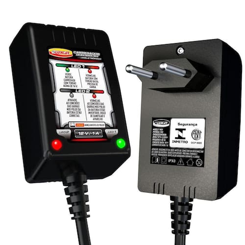 O carregador de bateria 12 v eletrônico luxcar foi desenvolvido para manter ou carregar o nível de carga da bateria do seu carro. Inteligente, Possuí Proteção Contra Curto-circuito E Inversão De Polaridade . Carregamento Seguro E Completo, Maior Vida Útil Da Bateria. Com 14 V / 16 W De Potência, Ele Carrega A Bateria Em Uma Velocidade De 1 Ampere Por Hora, Dependendo Do Caso, Seu Carro Volta A Dar Partida Em Menos De 30 Minutos. Possuí Corte Eletrônico De Energia, Quando A Carga Estiver Completa, Ele Para De Carregar. Bivolt Automático E Sem Chave Seletora, Pode Ser Utilizado Tanto Nas Tomadas 110 V Ou 220 V. Super Silencioso. Carregador de Bateria Eletrônico Luxcar 12 v O Carregador de Bateria 12v Eletrônico Luxcar foi desenvolvido para manter ou carregar o nível de carga da bateria do seu carro. Inteligente, possui proteção contra curto-circuito e inversão de polaridade. Carregamento seguro e completo, maior vida útil da bateria. Com 14v / 16w de potência, ele carrega a bateria em uma velocidade de 1 ampere por hora, dependendo do caso, seu carro volta a dar partida em menos de 30 minutos. Possui corte eletrônico de energia, quando a carga estiver completa, ele para de carregar. Bivolt automático e sem chave seletora, pode ser utilizado tanto nas tomadas de 110v ou 220v. Super silencioso. Vantagens: Homologado Bivolt 110v ou 220v Leds de indicação de carga Proteção eletrônica Modo de usar: 1. Verifique as condições gerais da bateria. 2. Conecte a garra vermelha do carregador no polo positivo + da bateria. 3. Conecte a garra preta do carregador no polo negativo - da bateria. Obs.: Se acender o LED2 Polaridade Invertida, as garras foram conectadas invertidas. 4. Conecte o aparelho na tomada. Obs.: Se o LED1 acender na cor vermelha, isso significa que a bateria está com sua carga baixa. Aguarde a carga total que é quando a tensão fica acima de 14,0v. Neste caso, o LED1 acende na cor verde. Isso significa que sua carga eá completa. Neste caso, pode manter conectado na tomada e as garras na bateria o tempo todo a fim de maner sua carga. 5. Ao término, desconecte primeiro o aparelho da tomada. 6. Desconecte a garra preta do polo negativo - da bateria. 7. Desconecte a garra vermelha do polo positivo + da bateria. 8. A bateria está pronta para ser utilizada em seu automóvel. Composição: Gabinete: Acrilonitrilo Butadieno Estireno abs . Pinos E Garras: Latão. Placa Eletrônica: Fenolite E Cobre. Cabo De Alimentação: Policloreto De Vinila pvc E Cobre. CERTIFICADO INMETRO: 218.017/19 Ean: 7896498515002