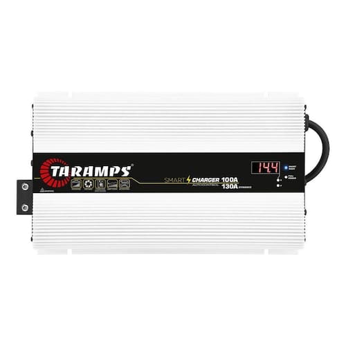 Carregador De Bateria Taramps Smart Charger 100a 3,4kva Desenvolvida com a mais alta tecnologia, A Smart Charger 100/130A é uma fonte e carregador de baterias inteligente. Em outras palavras, ela pensa por você, permitindo uma utilização prática, não exigindo conhecimento técnico do usuário para realização da recarga de baterias. Basta liga-la, e a Smart Charger fará todo o resto, se ajustando automaticamente e buscando a otimização na recarga das baterias. Ela pode ser usada como: Carregador de baterias, fonte de alimentação ajustável em 12,6V, 13,8V ou 14,4V, auxiliar para sistemas de som automotivo, entre outras.
