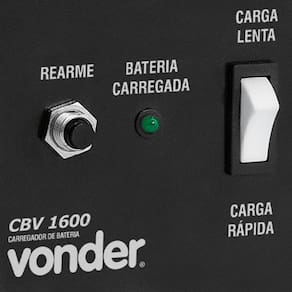 Possui função carga rápida que agiliza o processo de carga em situações de emergência, além de carga lenta, possui fusível de entrada, proporcionando maior proteção, aviso luminoso de bateria carregada e também de superaquecimento e conta com grau de proteção IP20 Tensão de entrada do carregador de baterias:127 V ou 220 V Frequência Hz 60 Hz Segue norma:Abnt Nbr IEC 60335 1 e IEC 60335 2 29 Capacidade de carga da bateria 12V 32 Ah 150 Ah Capacidade de carga da bateria 24V N/A Corrente de carga lenta bateria 12 V 8 A Corrente de carga lenta bateria 24 V N/A Corrente de carga rápida bateria 12 V 12 A Corrente de carga rápida bateria 24 V N/A Tensão de saída do carregador de bateria 12 V Grau de proteção IP do carregador de baterias IP 20 Segue Norma Abnt NBR IEC 60335 1 e IEC 60335 2 29 Prazo de garantia 6 meses Ean: 7893946463069