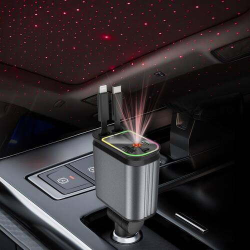 Carregador retrátil Starlight: ilumine suas viagens, transforme seu carro em um santuário cativante com o carregador retrátil Starlight. Este carregador de carro de ponta combina funcionalidade com inovação, apresentando um design versátil 4 em 1 feito sob medida para o motorista moderno. Compatível com iPhone e equipado com dois cabos de carregamento retráteis – tipo C e iOS – este carregador acomoda facilmente até quatro dispositivos simultaneamente através de suas portas USB duplas (USB-C e USB-A). Diga adeus à bagunça e cabos emaranhados; o recurso retrátil inteligente permite que o cabo se estenda até 80 cm (31,5 polegadas), retraindo perfeitamente e automaticamente para um interior organizado. Experimente o carregamento ultrarrápido com uma porta tipo C capaz de fornecer até 66 W de energia, juntamente com uma porta USB-A que oferece uma impressionante capacidade de carregamento de 20 W. Projetado com segurança em mente, o carregador Starry inclui proteções essenciais contra sobrecarga, sobrecorrente, sobretensão, flutuações de temperatura e curto-circuitos, garantindo que seus dispositivos estejam em boas mãos. O plugue inteligente ajustável de 180 graus garante um carregamento estável e seguro, mesmo nas estradas mais acidentadas. Atualize as capacidades de potência do seu carro enquanto adiciona um toque de charme celestial com o carregador de carro retrátil estrelado – onde a tecnologia de ponta encontra o design elegante. Perfeito para aqueles que priorizam eficiência e estética, este carregador é o seu companheiro essencial em todas as jornadas. Seja um carregador de carro para iPhone, um carregador de carro USB-C ou um carregador de telefone de carro confiável, o Starry foi projetado para melhorar sua experiência de condução perfeitamente. - Melhore sua experiência de condução: transforme seu carro em um santuário hipnotizante e desfrute de projeções de estrelas sonhadoras com o carregador retrátil Starlight. Mergulhe na atmosfera encantadora enquanto carrega rapidamente seus dispositivos, o carregador de carro USB C transforma cada jornada para você. - Design de conveniência retrátil integrado: este carregador de carro inovador possui um design 4 em 1 com um carregador de carro compatível para iPhone que inclui dois cabos de carregamento retráteis (Tipo-C e iOS) e duas portas USB (USB-C e USB-A). Carregue até quatro dispositivos ao mesmo tempo, simplificando suas necessidades de carregamento enquanto mantém seu carro arrumado. - Cabo retrátil automático fácil: nosso carregador de carro de carregamento rápido é projetado com sua configuração de carregamento ideal em mente, com um cabo que se estende até 80 cm (31,5 polegadas). Retire facilmente o cabo desejado e deixe-o retrair sozinho, eliminando emaranhados e garantindo um interior limpo e organizado. - Tecnologia de carregamento rápido: experimente o carregamento extremamente rápido com este carregador de carro retrátil 4 em 1 A porta tipo C oferece até 66 W de energia e a porta USB-A oferece 20 W de capacidade de carregamento. Carregue rapidamente seus dispositivos mesmo durante as unidades mais movimentadas. - Recursos de segurança poderosos: o carregador de carro Star prioriza sua segurança com uma ampla variedade de proteções integradas compatíveis com o carregador de carro do iPhone/carregador de carro USB C, incluindo sobrecarga, sobrecorrente, sobretensão, controle de temperatura e proteção contra curto-circuito. Confie em nosso chip inteligente integrado para proteger os eletrônicos e dispositivos preciosos do seu veículo. - Plugue de carregamento ajustável de 180 graus: o plugue retrátil ajusta 180 graus para um carregamento seguro e estável mesmo em estradas difíceis. Ideal para carregar seu celular enquanto dirige, o recurso ajustável garante facilidade de uso e compatibilidade com uma variedade de interiores de veículos e um fluxo constante de energia em uma variedade de configurações de veículo. Diga adeus à preocupação com cabos soltos ou carregamento interrompido durante a viagem. - Certificado de protocolo de carregamento multirápido: o carregador USB C do isqueiro é compatível com dispositivos compatíveis com PD, QC3.0, AFC, MTK e FCP, incluindo celulares, tablets, laptops, interruptores e muito mais. Compatível com iPhone 16/15/14/13/12/11/Plus/Pro/Pro-Max/mini/XS/XS Max/XR/X/8Plus/8/7 Plus/7/6S/6, compatível com Samsung Galaxy Note 20 Ultra/Note10 Plus/S23/S22/S22+/S22Ultra/S21+/S20/S10 5G/AA. 54/S/S 9 Plus/S8+/Note 9, compatível com Google Pixel7/7a/6/6a/5/4xl/3xl/2xl/3a/4/4a/Nexus6P, etc.