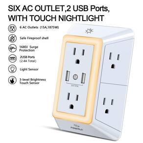 Especificações: Cor: Cinza Saída total USB: 5V/2,4A Tensão de entrada: 125 VAC; 60 Hz Máx. Corrente: 15A Classificação de potência máxima: 1875W Dimensões do produto: 14 x 9,7 x 6,6 cm Classificação de proteção contra sobretensão: 1680J Conteúdo da embalagem: 1 tomada múltipla com portas USB. 1 x manual de instruções (idioma português não garantido). 1 caixa de papel. - Saída USB multifuncional: 2 portas USB de carregamento rápido, filtro de energia de 3 lados, com 6 tomadas espaçadas por adaptador e luz noturna LED nas bordas. Tomando o lugar de um soquete padrão, mas oferecendo muito mais plugues. Pode ser utilizado em qualquer sala ou áreas públicas internas. Economize espaço com design 3D exclusivo. - Amplo espaço: 6 tomadas AC embutidas 1680 Joules protetor contra sobretensão com espaço de 5,3 cm de comprimento no meio, maior do que o soquete padrão de 3,8 cm. Espaçamento maior torna mais fácil de usar para todos os tipos de equipamentos. 2 portas USB inteligentes (total de 2,4 A) podem carregar seu dispositivo inteligente rapidamente. Observação: este produto é uma tomada com vários plugues. Para qualquer dispositivo de classificação de potência grande com mais de 1000 W, como AC, aquecedor de ambiente, conecte diretamente à tomada duplex. Não sugerimos usar este produto. - Luz noturna inteligente: com sensor do crepúsculo ao amanhecer, liga automaticamente apenas quando a iluminação ambiente se torna insuficiente. Com sensor de toque, três níveis de brilho ajustável permitem que você escolha a quantidade certa de luz para suas próprias necessidades. Você também pode optar por ligar/desligar a luz noturna manualmente. - Circuito protetor de sobretensão confiável: um circuito protetor de surto complementar de 3 níveis composto por TVS, MOV (varistor de óxido metálico), GDT (tubo de descarga de gás), com capacidade mínima de absorção de energia de 1680J, pode proteger seus dispositivos muito mais rapidamente e de forma confiável do que circuitos de proteção contra surtos MOV (varistor de óxido metálico) de 1 nível de outra marca. - Nosso serviço pós-venda: Certificado ETL, nosso atendimento ao cliente amigável e confiável responderá a você dentro de 24 horas. Você pode comprar com confiança, com nossa devolução de 30 dias e substituição de 12 meses.