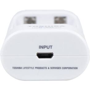 Carregador De Pilha Usb Tnhc-6gme4 Cb (c/4 Pilhas Aa 2000 Mah) Toshiba O Carregador de Pilha USB TNHC-6GME4 CB torna sua vida melhor e mais prática. O carregador de pilhas portátil da Toshiba carrega via USB até quatro pilhas ao mesmo tempo nos formatos AA/AAA. É ideal para viagens, eventos, e onde for não vai se preocupar com gastos de pilhas, ou seja, pronto para usar a qualquer momento! Ele possui corte automático de energia e é de fácil utilização e conexão. Funciona através do computador, carregador de smartphone ou qualquer carregador USB regular com tomada para micro USB. Além disso, as pilhas recarregáveis TOSHIBA (Ni-Mh) oferecem conforto e desempenho robusto e duradouro. Elas são uma excelente escolha para dispositivos de média a alta capacidade, o que as tornam ideais para dispositivos digitais e de uso diário. Dependendo do uso e da aplicação, o ciclo pode atingir até 1.500 cargas/descargas. Eles são Pré-Carregada e pronta para uso, com baixa taxa de auto descarga. Cor:Branca Consumo de Energia:DC 5.0V/ 1.0A Dimensões:9.6 x 17.0 x 3.0 cm (L x A x P) Led:verde piscando: carregamento em progresso; Led verde fixo: carga completa. Conector:USB Pesquisa:carregador|de|pilha|usb|para 2|AA|AAA|min.2000mah|com 4|toshiba|