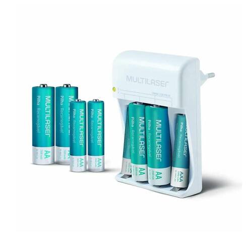 Carregador leve, compacto e fácil de usar. Portátil e bivolt, o Carregador CB093 da Multilaser é próprio para pilhas recarregáveis formato AA e AAA, economize tempo, com ele você pode recarregar até quatro pilhas de cada formato de uma só vez. Ideal para viagens e eventos onde você não pode se preocupar em gastar pilha. Com tempo aproximado de recarga de 10 horas para pilhas AA 2500mAh e apenas 4,5 horas para as AAA 900mAh. *Imagens Meramente Ilustrativas* Caracteristicas Cor: Preto Conteúdo da Embalagem: 1 Carregador de pilhas 4 Pilhas AA 4 Pilhas AAA 1 Guia rápido. Peso do produto: 210g Largura do produto: 6.1cm Altura do produto: 5.8cm Comprimento do produto: 8.5cm Aviso Sobre o Produto: 4 PILHAS AA 2500MAH e 4 PILHAS AAA 1000MAH
