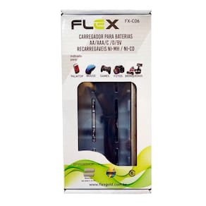 1 CARREGADOR DE PILHAS FLEX FX-C06 (NOVO MODELO) UNIVERSAL