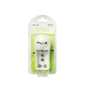 Carregador de pilhas com 2 aa recarregável flex fx-c11 -carregador de pilhas com 2 aa recarregável flex fx-c11 -carregadores de pilhas aa/aaa/9v -blister com 1 unidade -carrega 1 - 2 baterias recarregáveis aa/aaa ou 1 bateria 9v