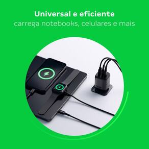 O EC 21 POWER 65W GaN é um carregador USB ultrarrápido e versátil, com 3 saídas USB, sendo duas delas no formato USBC e a outra em USB-A, oferecendo flexibilidade para atender os mais diferentes tipos de dispositivos, dos mais novos aos mais antigos. Com saída USB-C Power Delivery (USB-C PD) com potência máxima de 65 W, ele é ideal para o carregamento de notebook e Macbook que possuem essa potência de carregamento de uma maneira segura e eficiente. Ele também carrega todos os dispositivos com conexão USB de forma ultrarrápida, até três vezes mais rápido* que um carregador convencional.