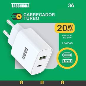 Carregador duplo com carga rápida, bivolt, formato retangular, produzido em plásticos de engenharia, metal e componentes elétricos.Tipo