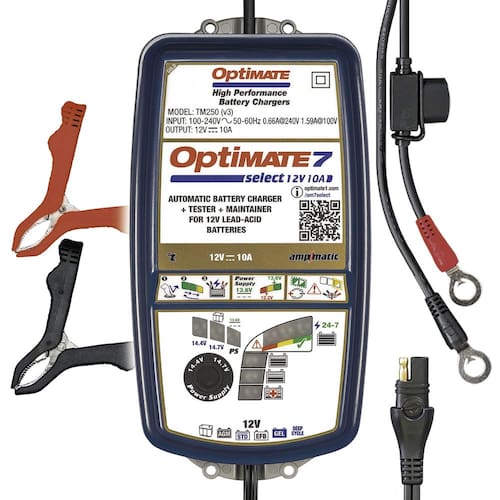 IMPORTANTE: Se for um produto elétrico, ele pode ser compatível com uma tomada de 110 volts. Se utilizado fora dos Estados Unidos, pode ser necessário um conversor de voltagem para garantir a operação adequada. Verifique se o produto que você está comprando é elétrico antes de considerar essas informações. Optimate 7 Select - Carregador e mantenedor de bateria automotiva de alto desempenho de 12 V 10 A para baterias AGM premium de ciclo profundo (TM-251v3)