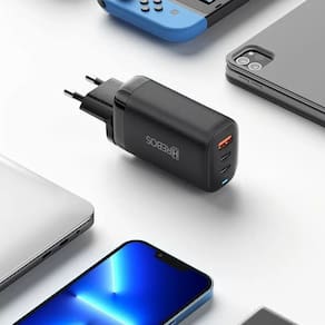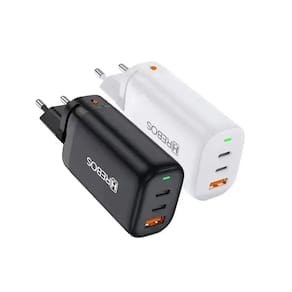 Carregador Hrebos ChargeWave CRG-202 de 65W com tecnologia GaN, 3 portas USB-C inteligentes para carregamento simultâneo de múltiplos dispositivos. Gerenciamento dinâmico de carga e distribuição de energia. Chipset inteligente com protocolos Power Delivery e Quick Charge. Carcaça em polímeros de alta resistência térmica e retardantes de chamas. Múltiplos sistemas de proteção contra sobrecarga, picos de tensão, superaquecimento e curto-circuito.Tipo
