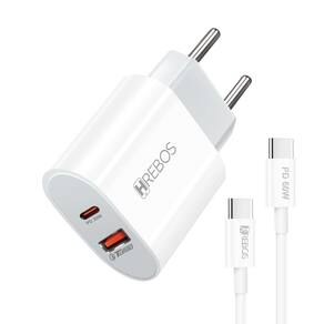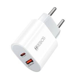 Fonte de alimentação com 2 portas de saída (USB-C e USB-A), potência real de 20W, compatível com Power Delivery (PD) e Quick Charge. Chipset inteligente para gerenciamento de carga. Carcaça em plástico ABS retardante de chama. Componentes internos de cobre de alta pureza. Design compacto. Múltiplos sistemas de segurança: proteção contra sobrecarga, picos de tensão e curto-circuito.Tipo