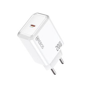 Carregador ultrarrápido de 20W com tecnologia Power Delivery (PD). Inclui cabo Dual Type-C (USB-C para USB-C). Gerenciamento térmico avançado e chipset inteligente para otimização de carga. Múltiplos protocolos de proteção contra sobrecarga, picos de tensão e curto-circuito. Design compacto e portátil.Tipo