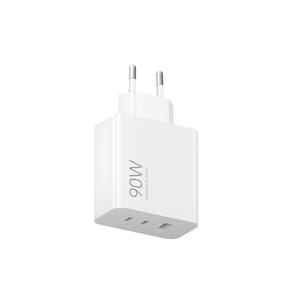 Carregador HyperCharge com 3 saídas (1x USB-A, 2x USB-C), potência total de 90W. Compatível com múltiplos protocolos de carga rápida (QC/PD/PPS). Proteção inteligente contra superaquecimento e múltiplos sistemas de segurança. Materiais resistentes a altas temperaturas e retardantes de chamas (UL94 V0).Tipo