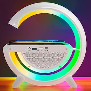 Carregador Indução Altofalante Bluetooth Lanterna Led Rgb