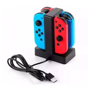 Características: - Baterias Carregadas Simultaneamente: 4 (max) - Carregadores de bateria: LEDs individuais. - Compatibilidade do Modelo: Nintendo Switch - Comprimento do cabo / cabo: 1,5m - Tensao: 5 V - Fonte de energia: alimentada por USB - A base proporciona estabilidade e seguranca