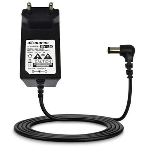 Quais as especificações do produto - input: bivolt 110 - 240v 50-60hz 0.33a - output: 15v - 1.5a positiva - plug: 5,5mm x 2,5mm - comprimento do rabicho: 2,50 metros - cabo de força: acompanha - medidas da fonte: comprimento = 8,7 cm / largura = 4,8 cm / altura = 2,7 cm - cor: preto - atente-se também ao pino conector, ele deve ser igual ao utilizado no seu aparelho comprimento e largura .