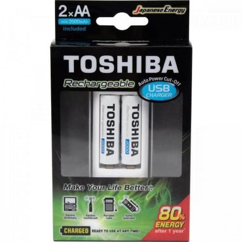 Carregador Pilha Usb 2 Pilhas Aa/Aaa .2.000 Mah Com 2 Carregador de Pilha USB p/2 pilhas AA/AAA min.2.000 mAh c/2 pilhas TOSHIBA Faça sua vida melhor e mais prática