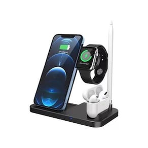 Carregador sem fio 4x1 Preto Celular Caneta Smartwatch Fone Contém: 01 Unidade Cor Branco / preto Chegou a nova estação de carregamento 4 em 1 Possui um carregador sem fio de 15w que carrega mais rápido Carregamento simultâneo de smart watches, fones de ouvido, canetas e smartphones, otimizando o tempo de carregamento de itens com frequência. Com um sistema de carregamento indutivo rápido, a estação permite o carregamento sem fio de telefones celulares compatíveis com qi. Atenção Para que funcione o seu aparelho ou acessório precisa ter a função de carregamento por indução Devido à diferença entre monitores e iluminação diferentes, pode haver variação na tonalidade apresentada no anúncio. Medidas muito aproximadas. Homologação Anatel: 146002213686