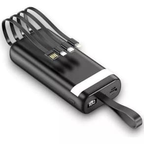 Carregador Portátil 20000mAh Com Cabos Embutidos Preto Powerbank 20.000 mAh Portátil Carregamento Rápido