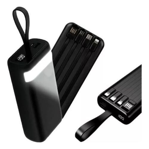 - Alta potência 20.000 mAh - 4 tipos de cabos Lightning, Type-C 3.0, Micro USB e USB - 1 Saída USB para carregamento via cabo USB de qualquer aparelho - Material e Acabamento de altíssima qualidade - Visor digital para saber quanta carga ainda resta - Carga Turbo