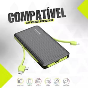 Carregador portátil externo powerbank 10000mah - energia confiável para todas as ocasiões Power bank 10.000mah com adaptador lightning para iphone e v8. Além disso possui entrada usb para que possa utilizar seu cabo e carregar qualquer aparelho.