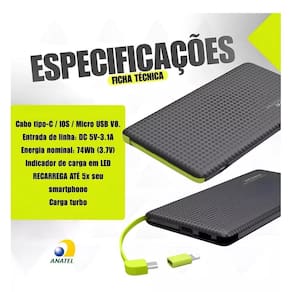 - agite para começar a carregar; - indicador de nível de carga em leds; - usa bateria de polímero de lítio para torna-lo mais fino e de alta performance; - tecnologia pass through charging, pode carregar seus dispositivos e ser recarregado ao mesmo tempo; - permite a recarga simultânea de dois aparelhos com muito mais velocidade; - moderno sistema de gel, apresenta baixa dilatação e elimina riscos de vazamento; - chip inteligente de reconhecimento, detecta automaticamente a tensão certa para não danificar seu celular; - construído em proteção da bateria ic para evitar o excesso de carga, sobre o descarregamento e curto-circuito;