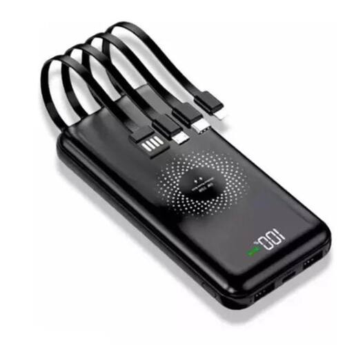 Carregador portátil com 10000mAh de capacidade, vidro temperado e plástico de alta resistência. Carrega até 6 dispositivos simultaneamente por indução, cabos USB ou inserindo cabos nas portas USB. Design moderno e refinado. Potência: 5V= 2.1A.Tipo