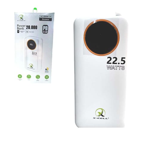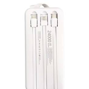Capacidade de 24.000mAh, 1x Micro USB, 1x Tipo-C (Entradas), 1x USB-A, 1x Tipo-C (Saídas), Cabos embutidos (Lightning, Tipo-C Android, USB-A), Tensão de Entrada 5V/2A, Tensão de Saída 5V/2.1A máx.Tipo