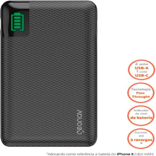 Carrega até três dispositivos simultaneamente, possui tecnologia Pass Through e proteção contra curto circuito.Acabamento do material