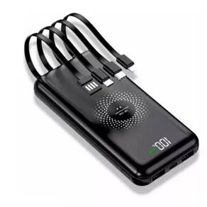 Carregador portátil por indução com 4 cabos inclusos. Capacidade de 10.000mAh. Carrega até 6 dispositivos simultaneamente (indução + cabos). Vidro temperado e plástico de alta resistência. Design moderno. Potência: 5V=2.1A.Tipo