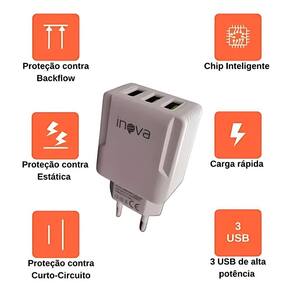 Carregador Rápido 3 Usb 2.0 5.1A Inova Car-9916