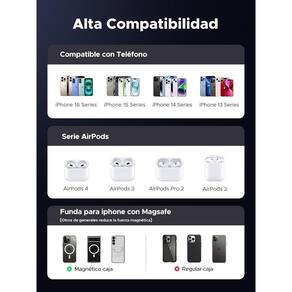 Carregador sem fio magnético com certificação Qi2 para carregamento rápido de até 15W. Possui forte adsorção magnética, design compacto e cabo USB-C de 1,5m. Feito com liga de alumínio resistente ao fogo e sistema de segurança inteligente com 7 proteções.Tipo