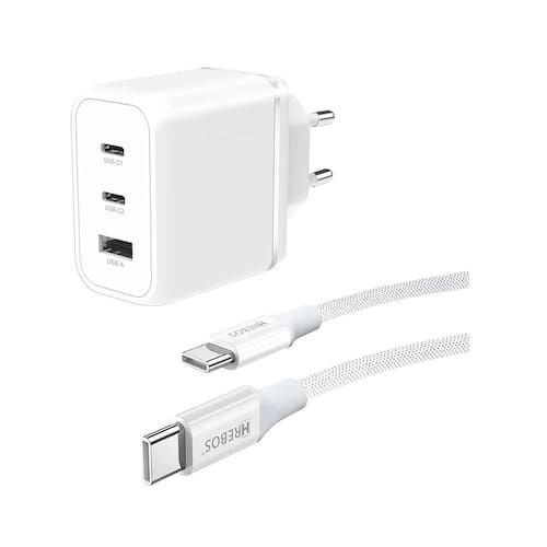 O Carregador de Parede Hrebos Premium 65W CRG-504C Branco é uma solução completa e versátil para quem precisa de potência, rapidez e segurança no carregamento de múltiplos dispositivos ao mesmo tempo. Equipado com duas portas USB-C e uma porta USB-A, ele oferece flexibilidade para carregar smartphones, tablets, notebooks compatíveis, fones de ouvido, power banks e outros aparelhos eletrônicos, tudo de forma simultânea e eficiente.