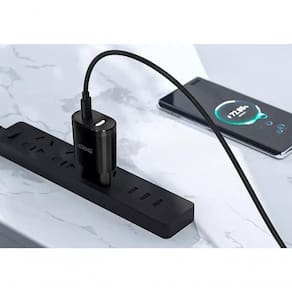 Carregador com e Android Com design ultracompacto, produto no padrão brasileiro de tomadas.