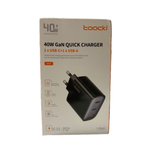 O Carregador Turbo GaN 40W da Toocki é a solução ideal para quem busca eficiência e praticidade. Com três portas USB-C, este carregador permite a conexão simultânea de diversos dispositivos, tornando o processo de recarga muito mais ágil. A tecnologia GaN garante um carregamento rápido e eficiente.