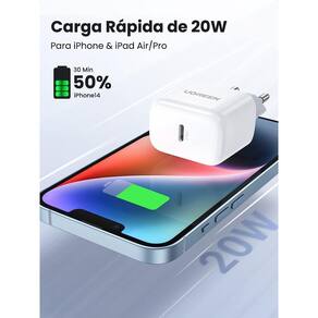 Carregador pd 3.0 com porta usb-c o carregador ugreen mini 20w usb c suporta a mais recente tecnologia power delivery 3.0.