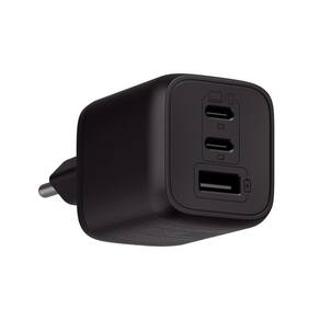 Carregador ultrarrápido com tecnologia GaN, design compacto e leve, 3 saídas USB (2x USB-C, 1x USB-A), alta eficiência de carregamento, sistemas de proteção contra sobrecarga, superaquecimento e curtos-circuitos.Tipo