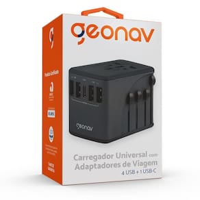O carregador adaptador de viagem é o acessório perfeito para quem gosta de viajar. Recarrega até 5 dispositivos e se adapta a mais de 150 países, além de ser o único no brasil com as aprovações exigidas pelo inmetro e certificação anatel. Possui um sistema de proteção contra curto-circuito, 4 portas usb e 1 porta usb-c para smartphones e tablets (6.5a no total).