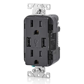 Leviton Carregador USB de parede T5632-E Tipo-A com tomada 15A resistente à violação, carregador USB para smartphones, preto