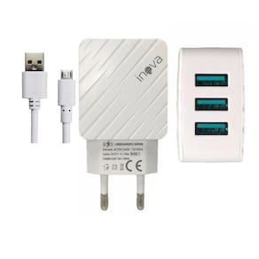 Carregador USB com 3 saídas, potência de 5.1A, carregamento inteligente, proteção contra sobrecarga, superaquecimento e curto-circuito.Tipo