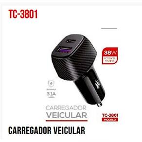 Carregador Veicular Com Porta Usb E Type-C 38W Tomate Tc-3801 Carregador veicular tomate - modelo tc-3801 Marca: tomate Modelo: tc-3801 Descrição do produto: O carregador veicular tomate é a solução ideal para manter seus dispositivos carregados durante viagens de carro. Construído com materiais de alta qualidade, oferece eficiência, durabilidade e praticidade, garantindo um carregamento seguro e rápido para seus dispositivos móveis enquanto você está em movimento. Características: Comprimento do cabo: 1.2m material do cabo: silicone líquido material do conector: abs corrente: 5v-2.4a Especificações técnicas: Entrada: 12-24v potência total: 38w saída 1 qc 3.0 : 5v-3a / 9v-2a / 12v-1.5a saída 2 pd 20w : 5v-3a / 9v-2.2a / 12v-1.5a Uso ideal: Perfeito para carregar smartphones, tablets e outros dispositivos usb durante viagens de carro. Com duas saídas rápidas qc 3.0 e pd 20w , você pode carregar vários dispositivos ao mesmo tempo, garantindo praticidade e segurança. Tenha seu dispositivo sempre pronto para uso, a qualquer hora e em qualquer lugar, com o carregador veicular da tomate. Marca: Não Informado