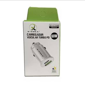 Carregador veicular com duas saídas (USB-C PD e USB-A) para carregamento rápido e simultâneo de até dois dispositivos. Tecnologia Power Delivery (PD) na saída USB-C. Até 75% mais rápido que carregadores comuns. Entrada: 12-24V. Saída USB-C 45W PD. Saída USB-A 15W MAX.Tipo