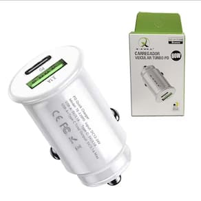 Carregador veicular com duas saídas (USB-C PD e USB-A) para carregamento rápido e simultâneo de até dois dispositivos. Tecnologia Power Delivery (PD) na saída USB-C. Até 75% mais rápido que carregadores comuns. Entrada: 12-24V. Saída USB-C 45W PD. Saída USB-A 15W MAX.Tipo