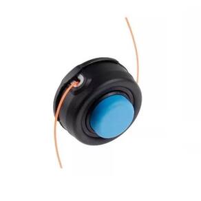 Carretel com alta durabilidade e sistema automático de liberar o fio de nylon. Quando houver a necessidade de liberar o fio, simplesmente de um toque no chão com o botão azul, que o fio sai automaticamente,. Não é necessário parar seu trabalho, nem desligar ou soltar a roçadeira do corpo.
