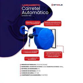 Conteúdo da embalagem: - 01 Carretel Retrátil Com Mangueira 10mm x 12 Metros R 1/4 Steels.