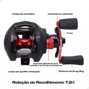 Corpo de Alumínio e Grafite Reforçado: A estrutura da carretilha é construída em uma combinação robusta de alumínio e grafite reforçado, garantindo leveza e resistência. O alumínio, presente no corpo e na manivela, oferece durabilidade contra corrosão, enquanto o grafite reforçado proporciona um equipamento leve e fácil de manusear, ideal para longas jornadas de pesca.