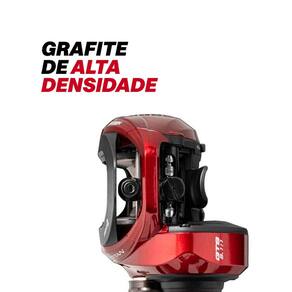 Seu chassi e laterais em grafite de alta densidade oferecem leveza e rigidez, enquanto o carretel de alumínio aliviado de 32 mm, com eixo em aço inox, proporciona durabilidade e equilíbrio. O sistema de freio ponto a ponto, presente tanto na estrela quanto no botão de ajuste, assegura regulagens finas e maior controle sobre o drag.